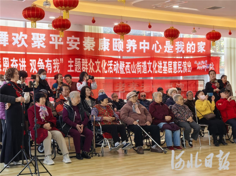 河北日报客户端讯(郝婷婷)10月24日,秦皇岛市北戴河区西山街道英才社区党委依托新时代文明实践站,与北戴河区民政局、河北环境工程学院经济与管理系、秦皇岛职业技术学院大学生心理健康协会、秦职大学生心理健康协会艺术系分会共同走进秦康平安颐养中心,以“双争有我·我们的节日·重阳——文艺汇演暖夕阳,共绘社校敬老新图景”为主题开展文艺演出活动,用精彩节目与贴心服务,为老人们送上重阳佳节的温暖祝福。