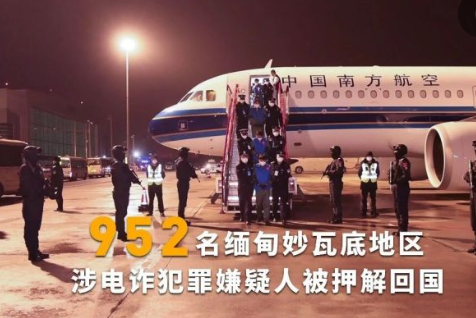 952名缅甸妙瓦底地区涉电诈犯罪嫌疑人被押解回国
