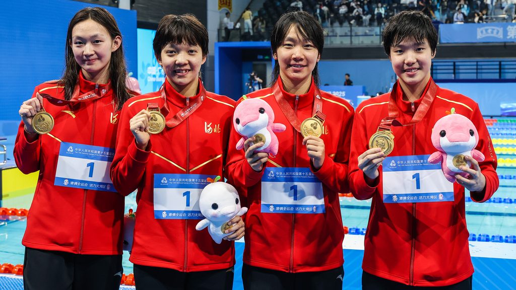 河北队摘得女子4×200米自由泳接力比赛金牌