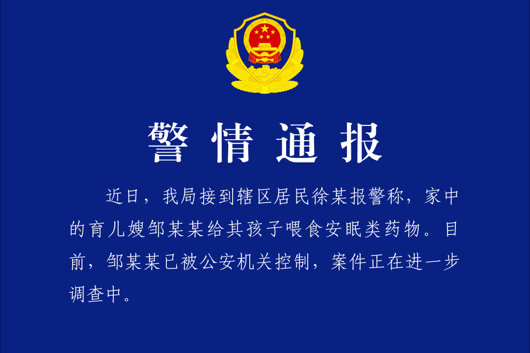 浙江公安:育儿嫂邹某某被控制