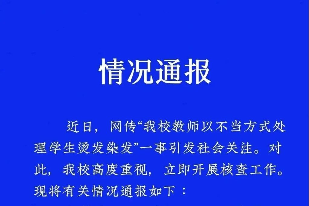 重庆一中学通报“老师将学生按在地上剪发”