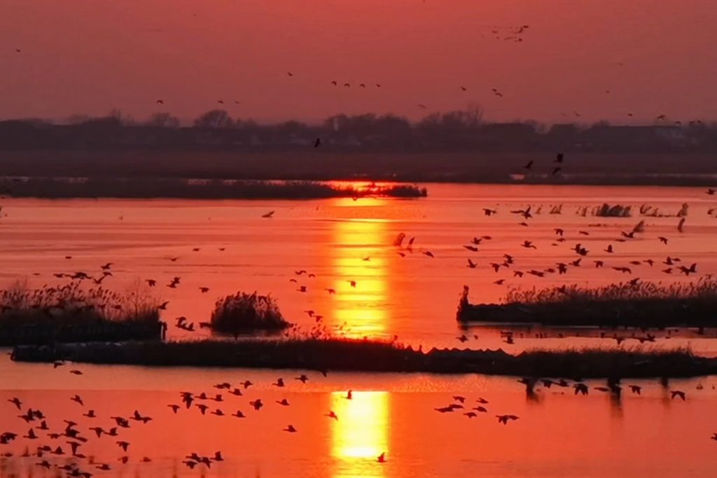 15秒看河北|群鸟共舞入霞光