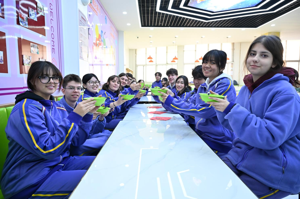 石家庄市42中交换生熬煮腊八粥解锁中国年味