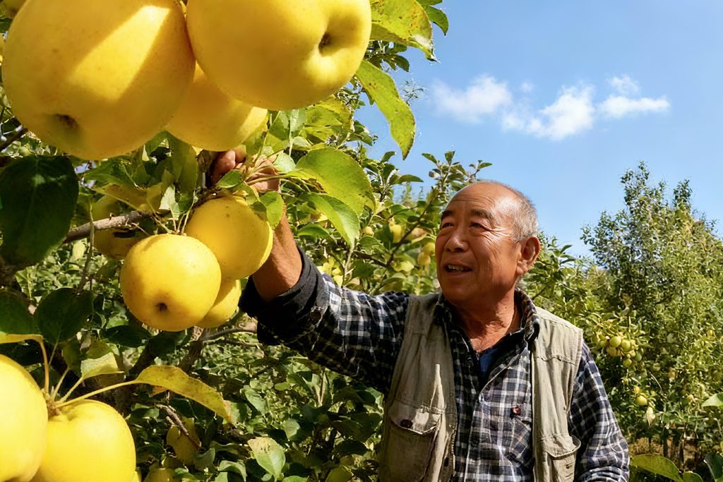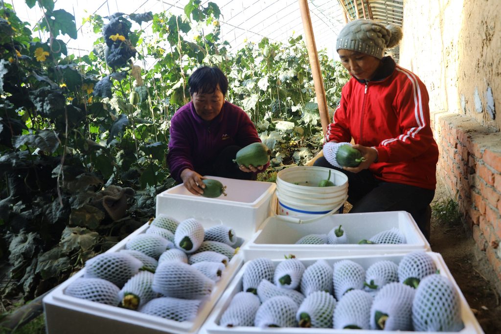 平泉市桲椤树镇苹果丝瓜丰收农民采摘忙
