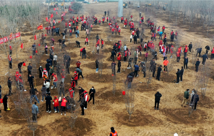 香河县运河景观绿化工程树木种植任务全部完成