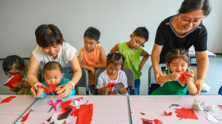 香河:放暑假 学剪纸
