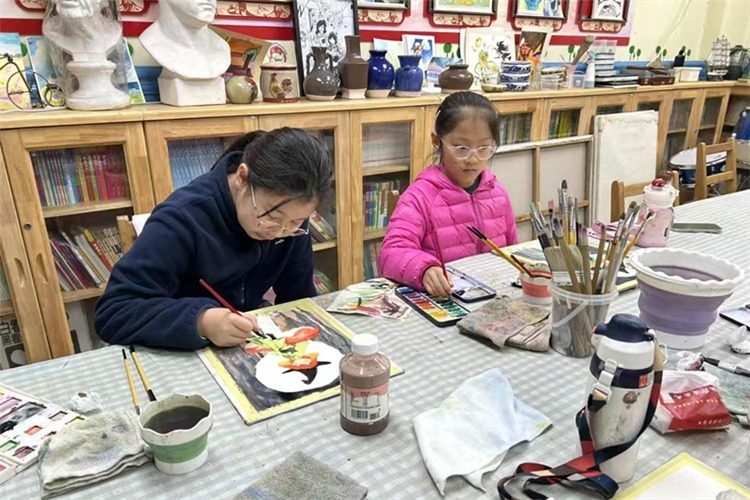石家庄市师大科大高校社区组织幼儿园孩子创作棉签画