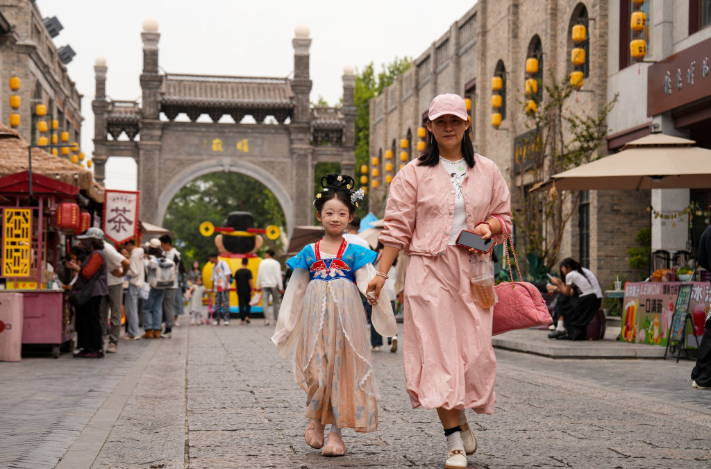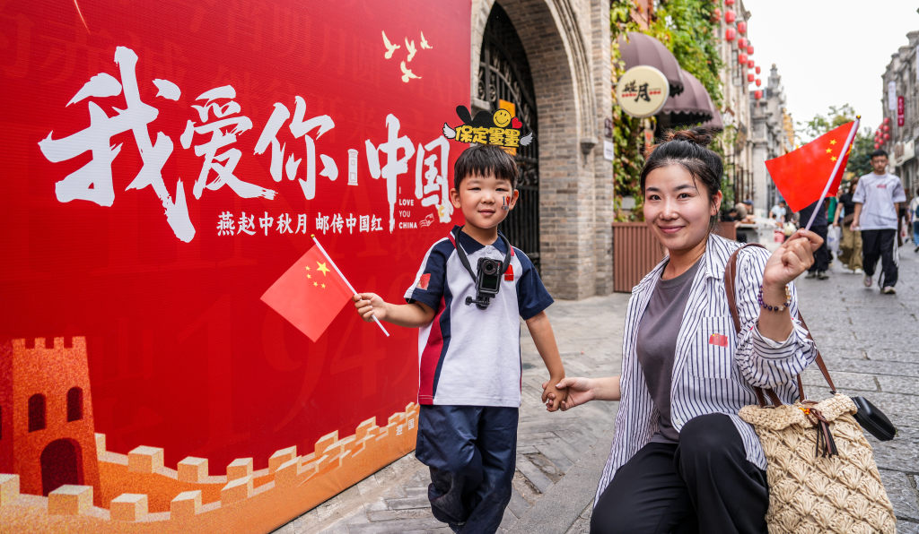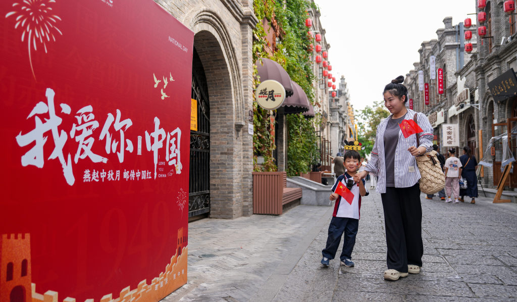 10月1日,游客在保定西大街游玩,感受保定古城风貌。