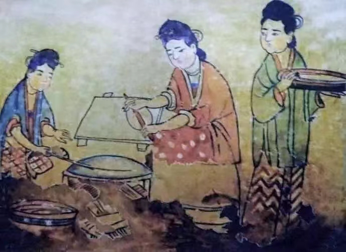 河南鹤壁宋墓壁画《厨娘烙饼图》