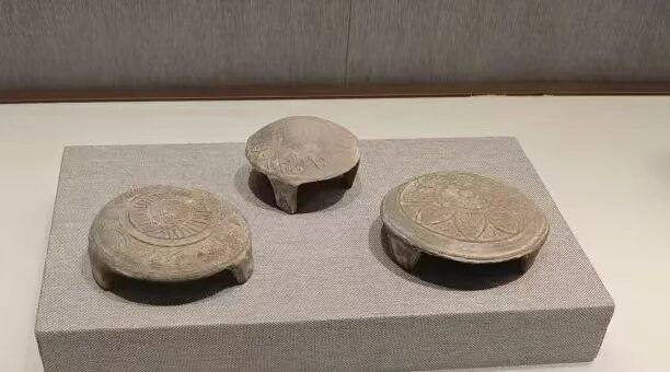 辽代灰陶印花三足鏊