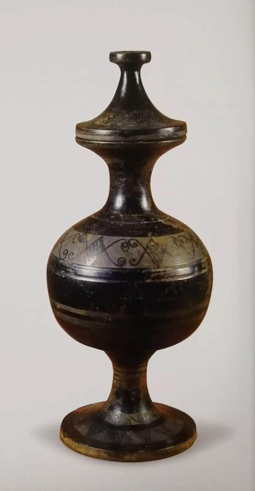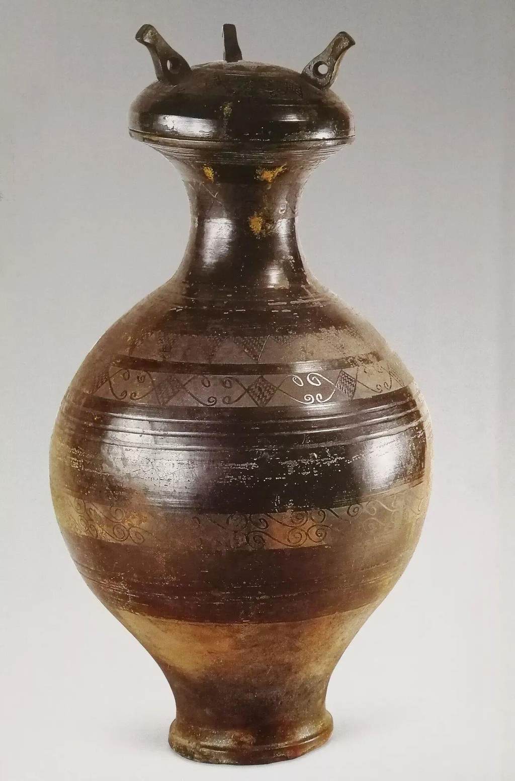 △战国 磨光压划纹黑陶圆壶河北博物院展出河北省文物考古研究院藏