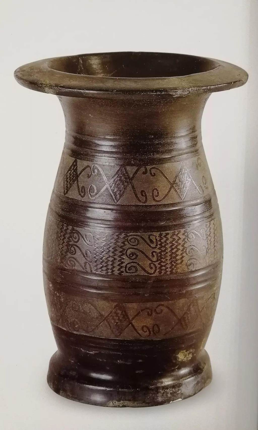 △战国 磨光压划纹黑陶筒状器河北博物院展出河北省文物考古研究院藏