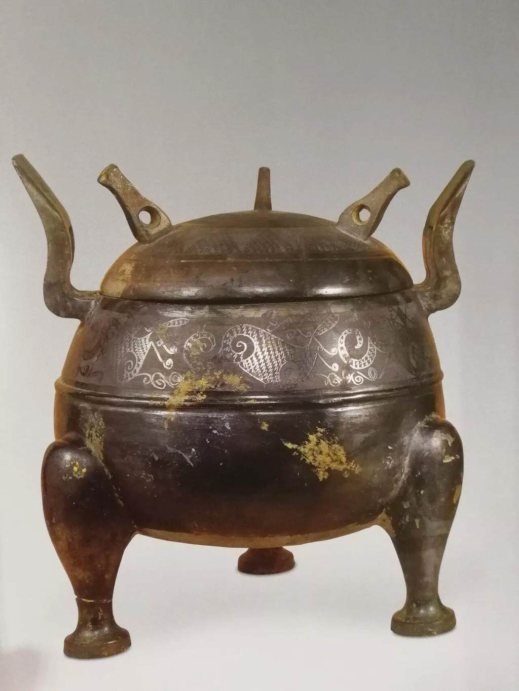 △战国 磨光压划纹黑陶鼎河北博物院展出河北省文物考古研究院藏