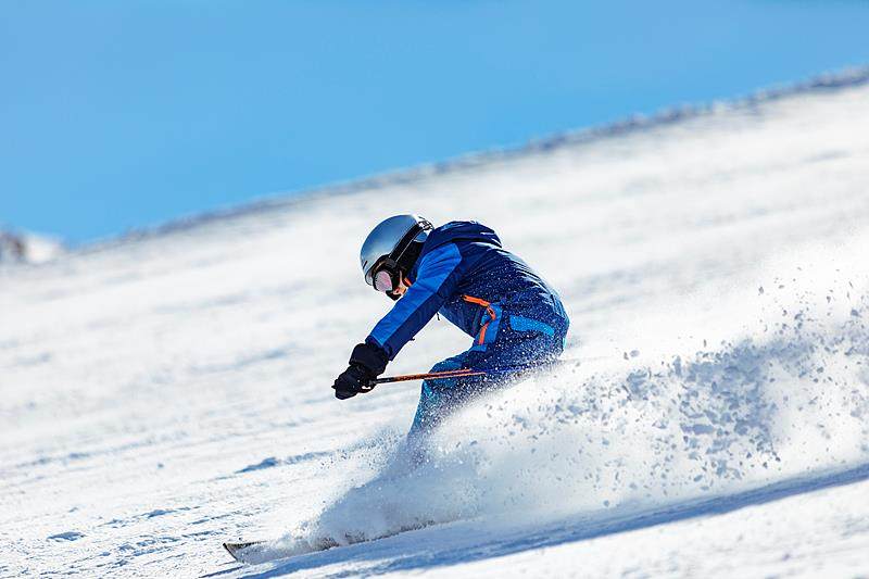 正确做法:向后倒时双手交叉抱肩,弓背低头,防止摔到后脑,勾脚刹车减速,身体蜷缩成球状用背着地;向前摔倒时,避免手腕或膝盖直接触地,迅速降低重心,用小臂接触雪面,顺势前扑。