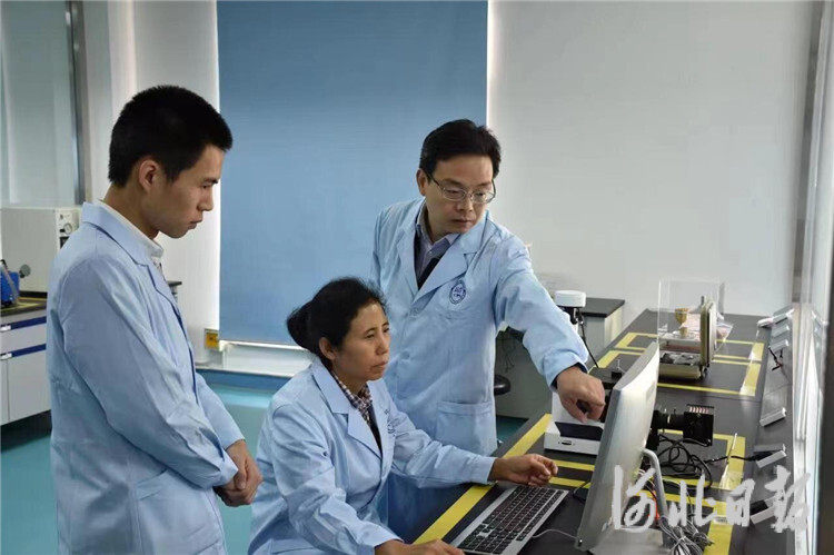 京津冀再制造产业技术研究院院长张伟(右一)指导科技研发人员进行实验数据分析。河北日报通讯员武雅迪摄