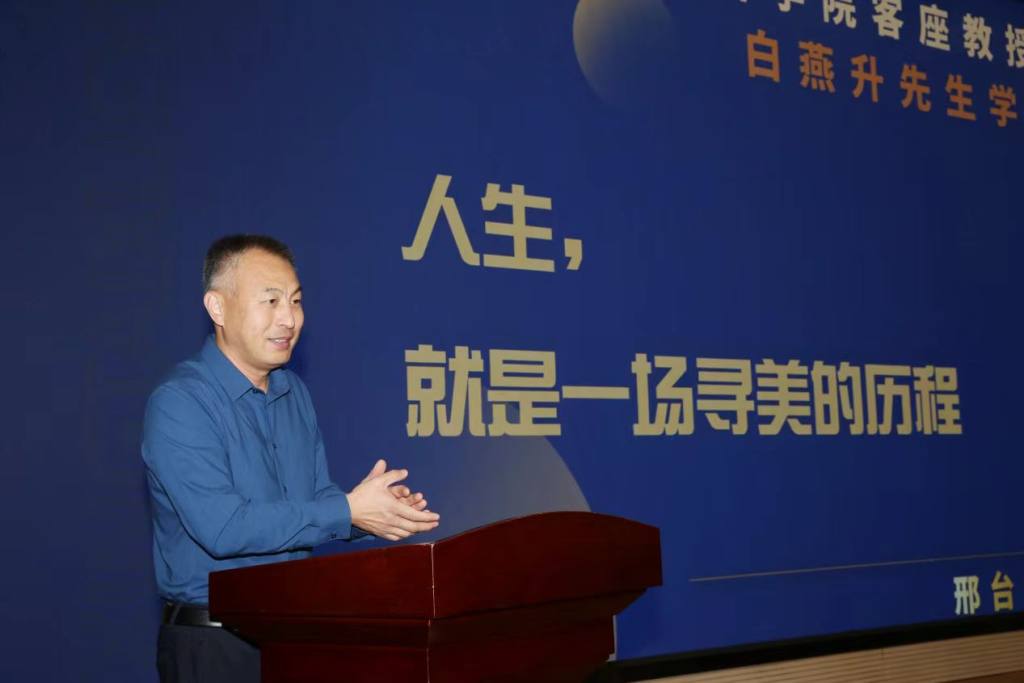 会上,贾云霄代表校党委和全体师生对白燕升的到来表示欢迎和感谢,介绍了学校百年底蕴以及近年来发展概况。贾云霄表示,白燕升先生是中国传统文化和艺术研究方面的名师大家,是“传播中华瑰宝的杰出使者”,能有机会邀请白燕升先生作报告并担任客座教授,既是学校之幸,更是艺术学科专业师生之福,必将有利于提升学校艺术人才培养质量,提升学校在文化产业方面服务社会的水平。此次聘任白燕升先生为客座教授,是学校对接国内行业顶尖专家学者的一个开端,今后,将放眼全国、聚焦高端,把更多“名人”“大师”请进来传经送宝,让师生们解放思想、开阔眼界,培养出更多的优秀人才。