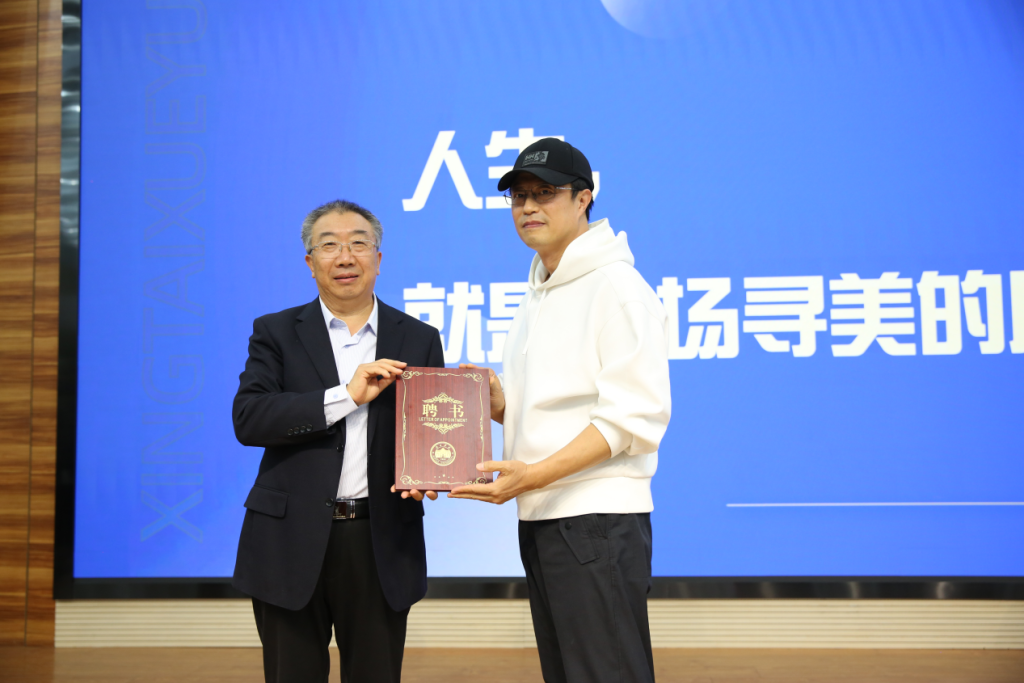 白燕升以《人生就是一场寻美的历程》为题做专题报告。他结合30多年职业生涯的丰富积淀以及对戏曲和传统文化的思考感悟,以戏曲传声、用文化布道,带领师生们深入了解传统文化的底蕴以及戏剧文化所独有的魅力。他旁征博引众多文化名家的生动案例,如苏轼悲苦但豁达的一生、史廷春卓越的文物修复技艺、阿炳与贝多芬的命运交响等,结合古今中外在色彩与设计方面的横纵对比,平实生动地展现了包括戏曲、诗词、书画、建筑在内的艺术超越时空的魅力;深入浅出地阐述了何为审美,审美艺术与日常生活的密切关系,新时代下学习审美、自我提升的重要性。