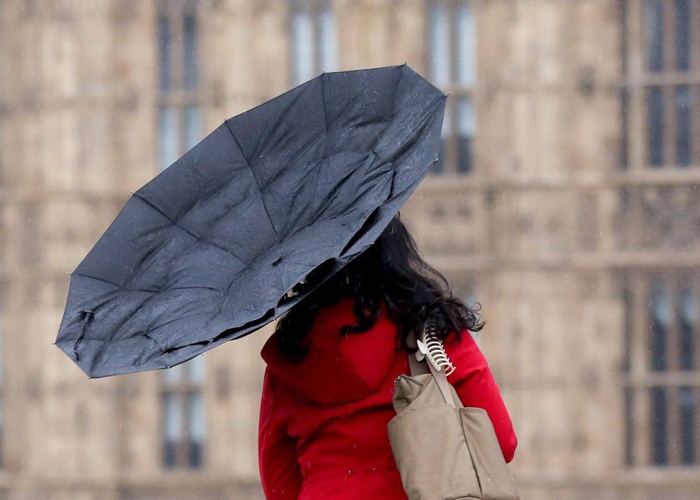 11月2日,在英国伦敦,一名女子打着伞走在威斯敏斯特桥上。新华社发