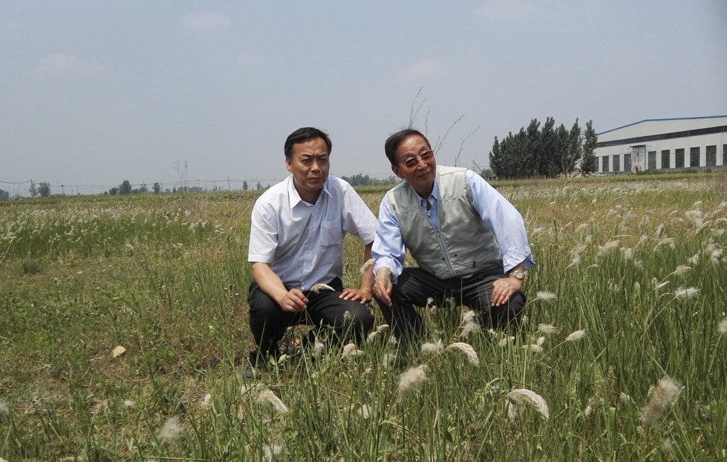 2016年5月,李振声院士(右)在中国科学院南皮生态农业试验站调研期间,与时任试验站站长的刘小京(左)合影。刘小京供图