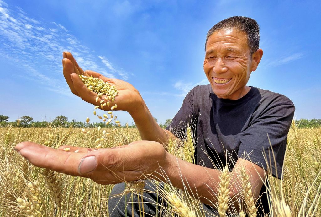 2023年5月29日,黄骅后仙庄村村民王力国手捧饱满的麦粒,满脸喜悦。(资料片) 河北日报记者 张 昊摄