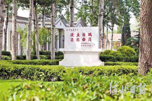 在中国农业大学曲周实验站院里,有一块刻着“改土治碱造福曲周”的石碑。中国农业大学曲周实验站供图