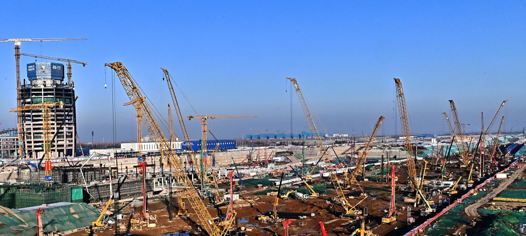 新年伊始,雄安城际站及国贸中心片区项目建设现场,一派热火朝天的施工景象。该项目位于雄安新区启动区核心位置,整个片区由雄忻高铁雄安城际站枢纽、京雄快线航站楼站、国贸中心和东西轴线公共交通组成。片区总占地面积约472亩,总建筑面积约160万平方米。