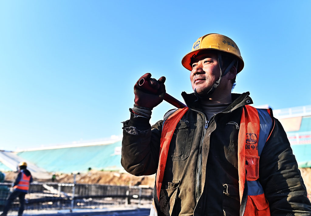 1月7日,雄忻高铁雄安城际站中铁建工集团有限公司施工项目现场,来自保定市唐县的钢筋工马玉田转战工位。