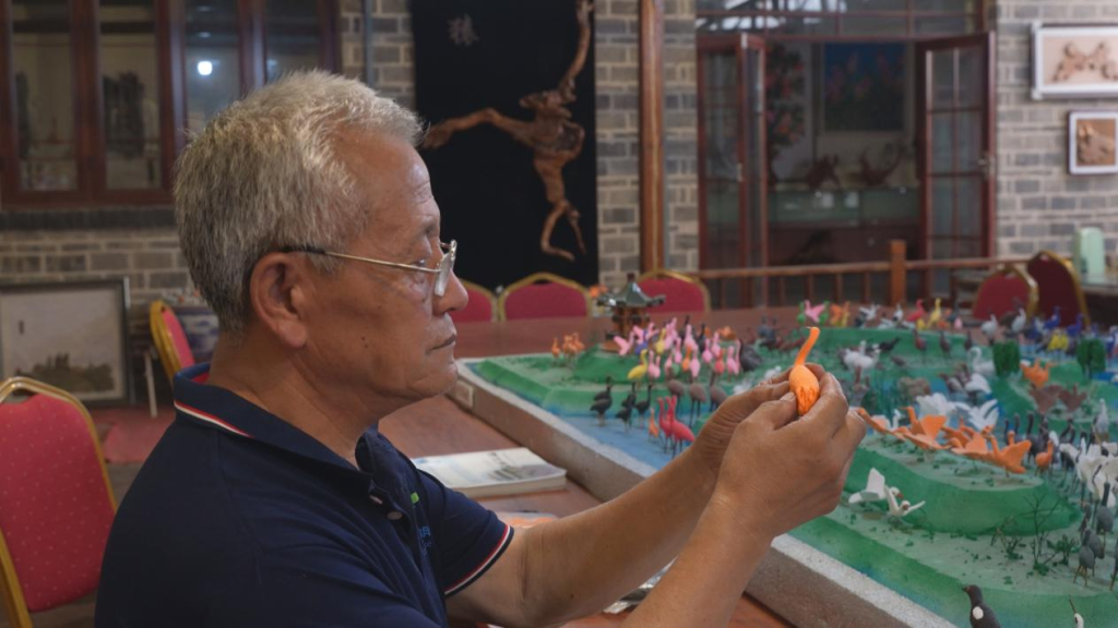 上百只精巧的丹顶鹤泥塑形态各异,有的振翅欲飞,有的低头梳理羽毛……河北衡水68岁的李学芳老人用一双巧手,捏出一件件栩栩如生的鸟类泥塑作品,老人希望通过自己的泥塑让更多人知鸟、爱鸟,加入到保护鸟类、保护生态环境的队伍中来。