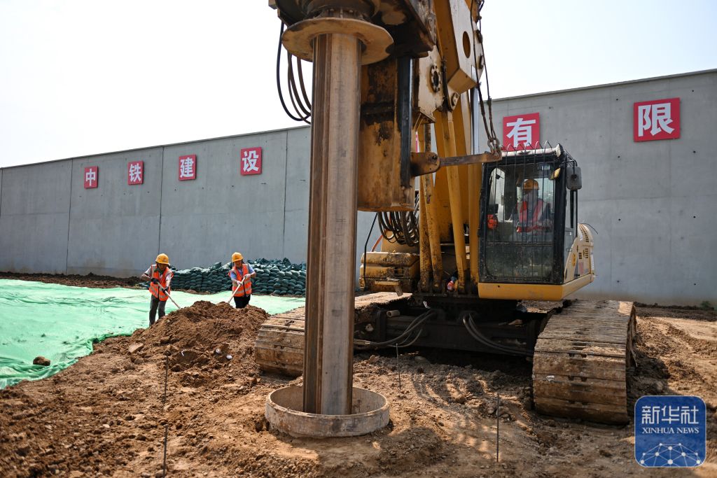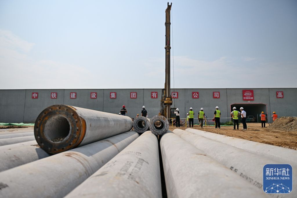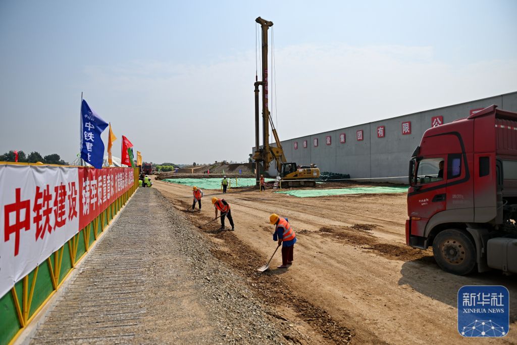 8月23日,中铁建设集团工人在雄忻高铁唐县站建设现场施工。