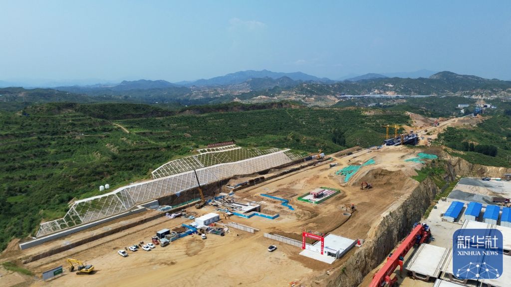 雄忻高铁阜平站建设现场(8月23日摄,无人机照片)。新华社发(曹龚摄)