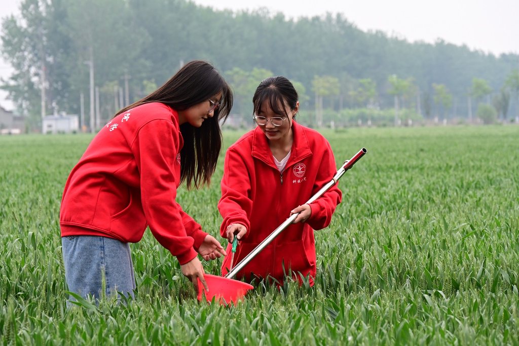 曲周科技小院学生在麦田中进行土壤取样。(资料片)中国农业大学曲周实验站供图