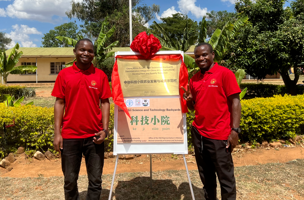 当地时间2023年11月7日14时,马拉维中部区卡松古县里萨萨兹科技小院正式揭牌。中国农业大学研究生非里(右)在揭牌仪式现场。(资料片)高新月摄