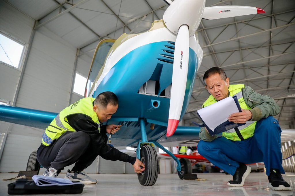 检查飞机外观、轮胎胎压、发动机启停……首飞前,享飞就飞衡水通用航空有限公司工作人员为飞机做了各项测试和准备工作。飞行过程中,地面执勤人员、塔台、试飞员通力协作,确保首飞平稳安全。