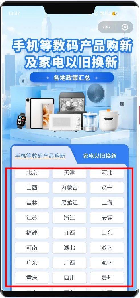 ②选择你所在的城市,根据提示查询本地政策、领取相关优惠。