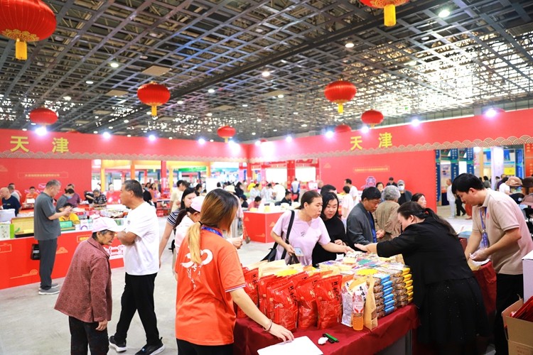 展会现场,老字号展区各有亮点。北京的“稻香村”、天津的“十八街麻花”“达仁堂”“海鸥表业”等老字号精彩亮相、河北的“金牛”“露露”带着三代人的记忆在此重逢;友省交流展区中,浙江“张小泉”“朱府铜艺”、山东“德州扒鸡”“鲁味斋”、新疆干果、跨越千里来“串门”,让跨区域品牌对话更热闹。