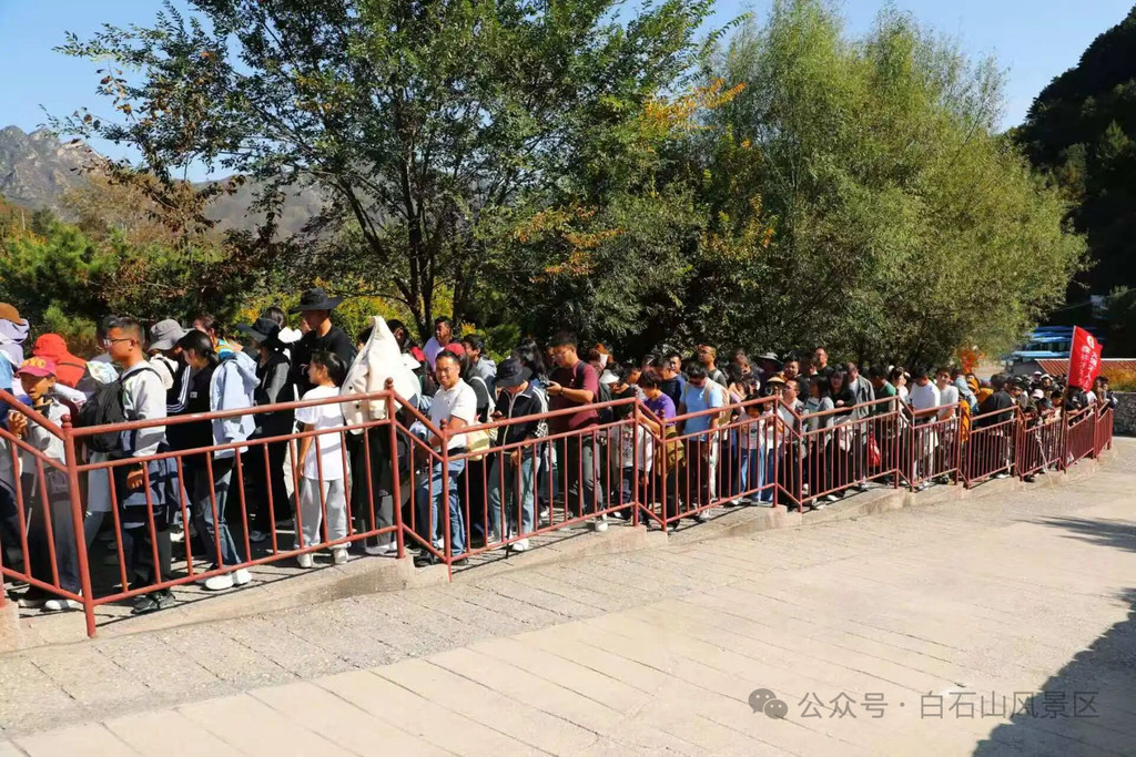 白石山景区内排队的游人。图片来源:白石山风景区