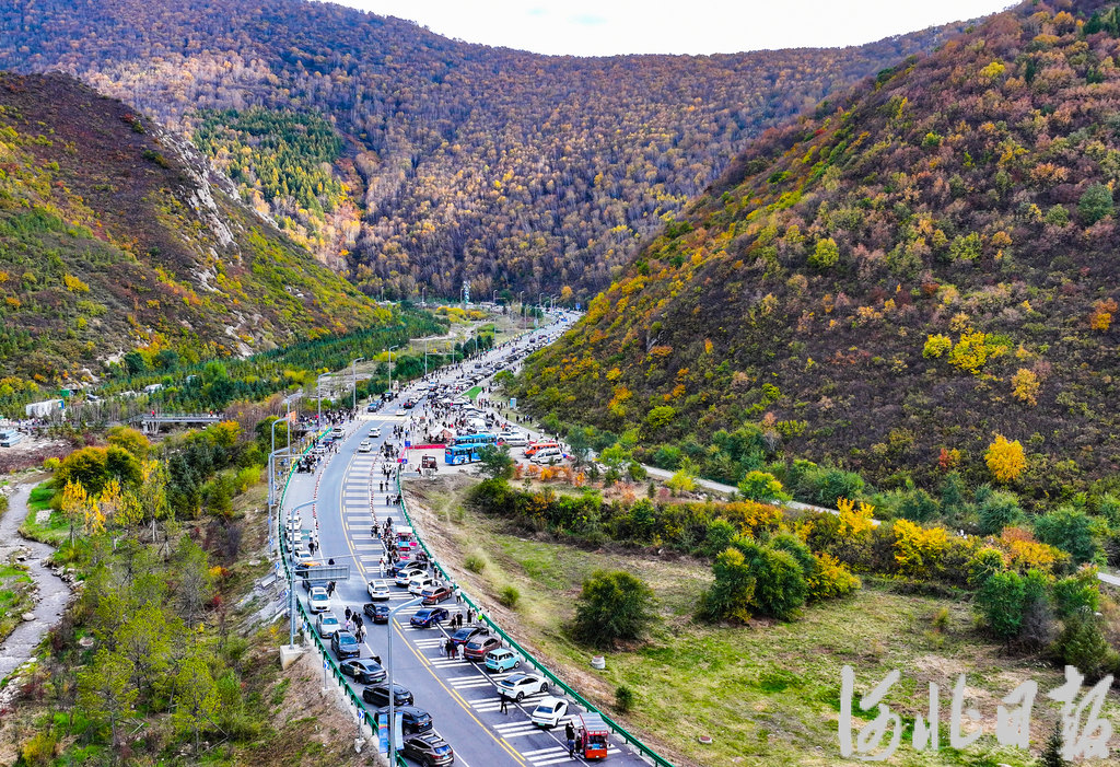 10月4日,游客在张家口市崇礼区梧桐大道赏秋景。河北日报记者耿辉摄
