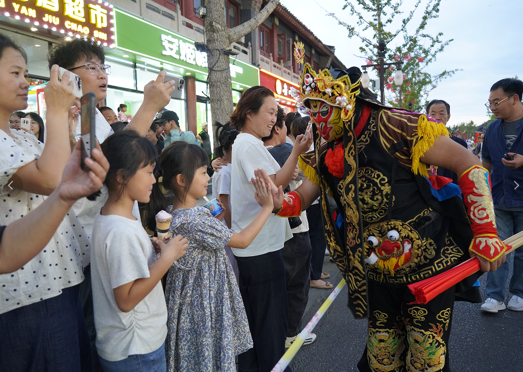 正定街头,演员与游客互动。图片来源:自在正定