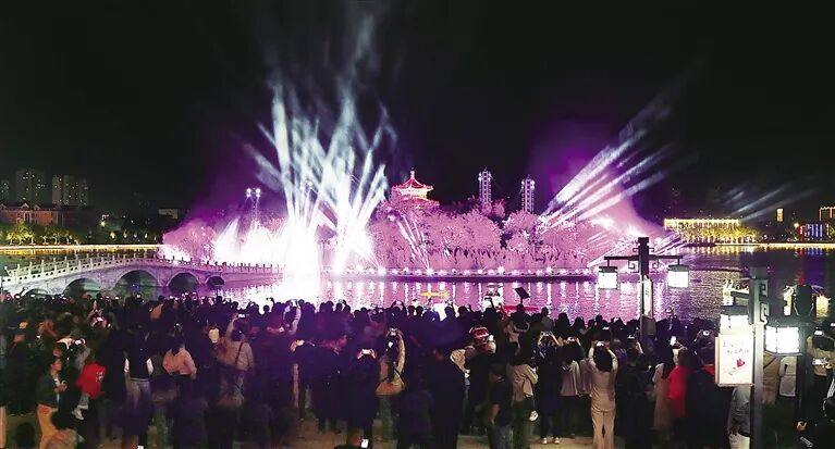 灯光秀将南川老街装扮得格外耀眼。图片来源:沧州日报