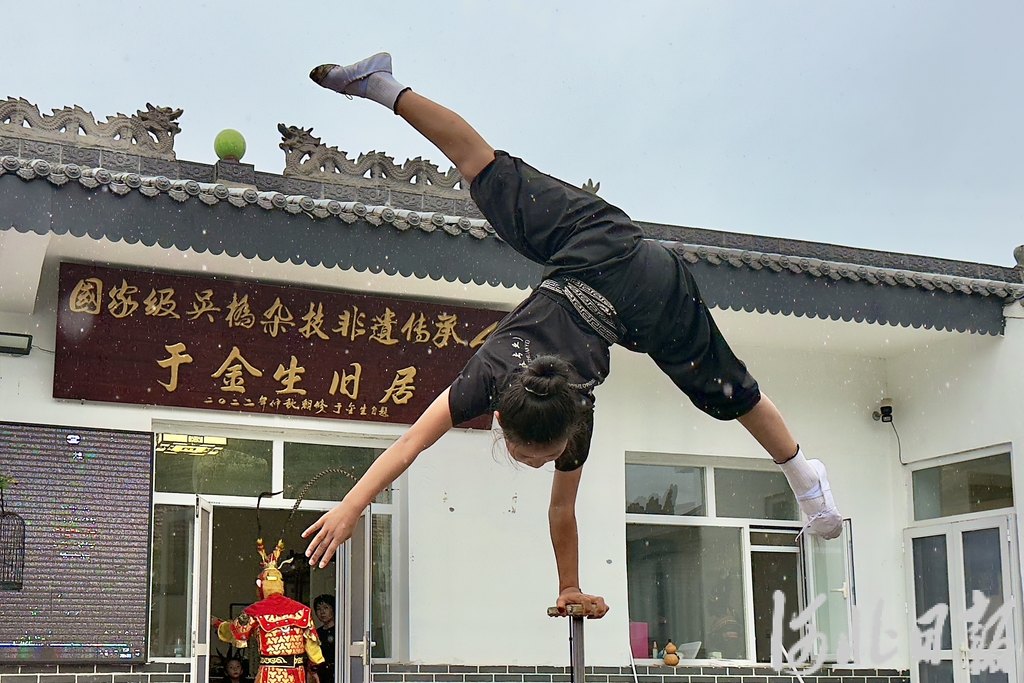 9月5日,小演员在沧州市吴桥县于金生杂技小院表演。河北日报见习记者崔玉洁摄