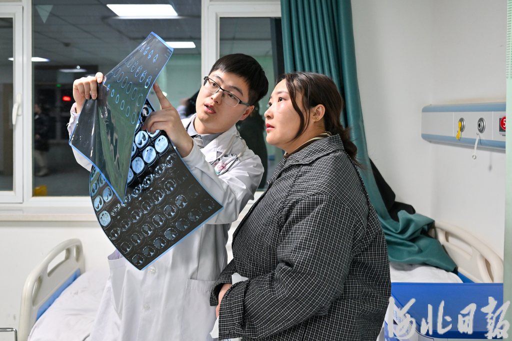 11月11日,吕霖潇在且末县人民医院与病人家属交流。河北日报记者田明摄
