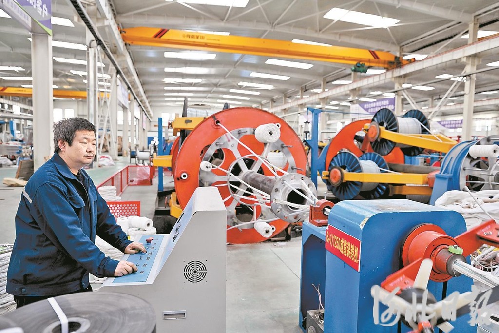 近日,宁晋县贾家口镇高端智能制造产业园泽楷线缆河北有限公司共享工厂内,工人在加工线缆。河北日报记者赵永辉摄