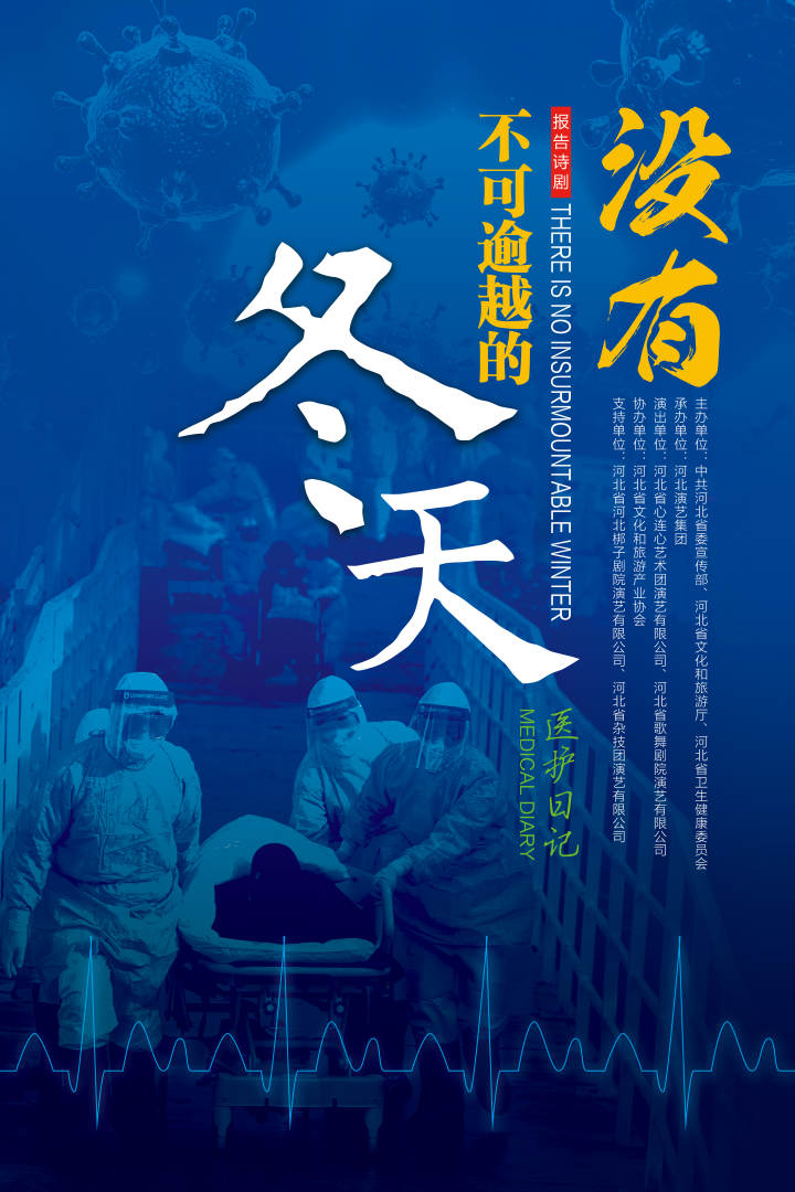 报告诗剧《没有不可逾越的冬天——医护日记》以纪实长诗展现中国人民众志成城、不畏生死、战之必胜的抗疫之路,讴歌战“疫”中的医护群体。该剧以“奋斗在抗疫一线的医护人员”群体形象为主线,触及不同场景的医生和护士的记忆,将他们工作的状态、足迹、心路历程、情感等展现在舞台之上。全剧以诗的意境营造为切入点,寻找一种独特的呈现样式,在戏剧化、情节化、人物化上下功夫,追求舞台形式呈现的多样性。除朗诵、情景表演、舞蹈等传统舞台表现形式,还结合了LED、冰屏、灯光、音响等现代科技,全方位、多角度进行展示与开掘,营造出生命的对话,情感的交融、厚重的史诗般场景再现。