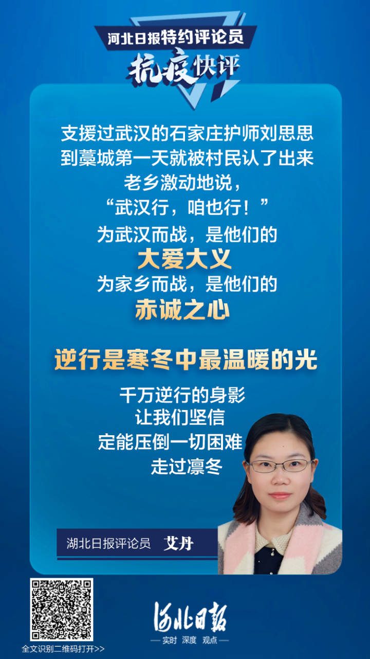 曾经支援过武汉抗疫的石家庄市二院主管护师刘思思,到达藁城第一天就被当地村民认了出来,老乡激动地说:“支援武汉的姑娘来了,武汉行,咱们也能行!别怕,赶紧配合做核酸!”