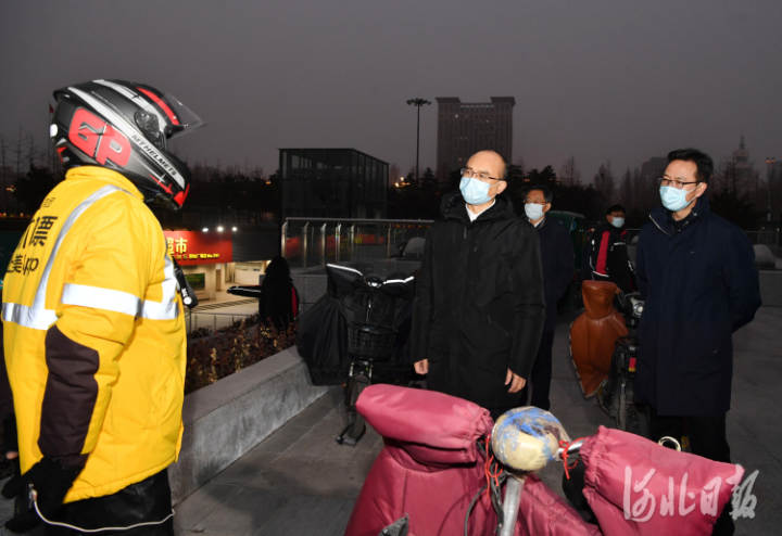 1月13日,省长许勤在石家庄市检查疫情防控工作。这是许勤到永辉超市维明大街店,与外卖小哥深入交流。河北日报记者孟宇光摄
