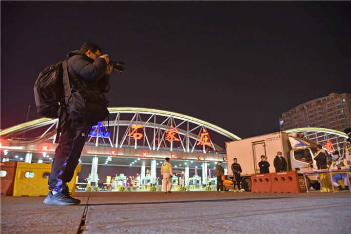 《河北日报》记者赵杰在石家庄裕华路高速口采访拍摄。