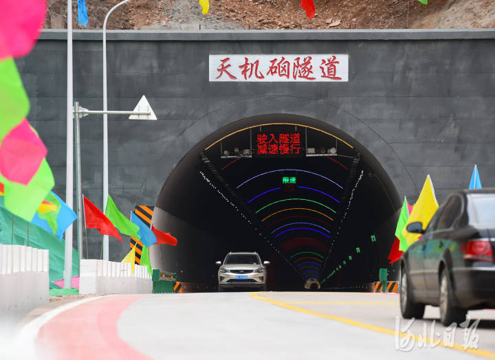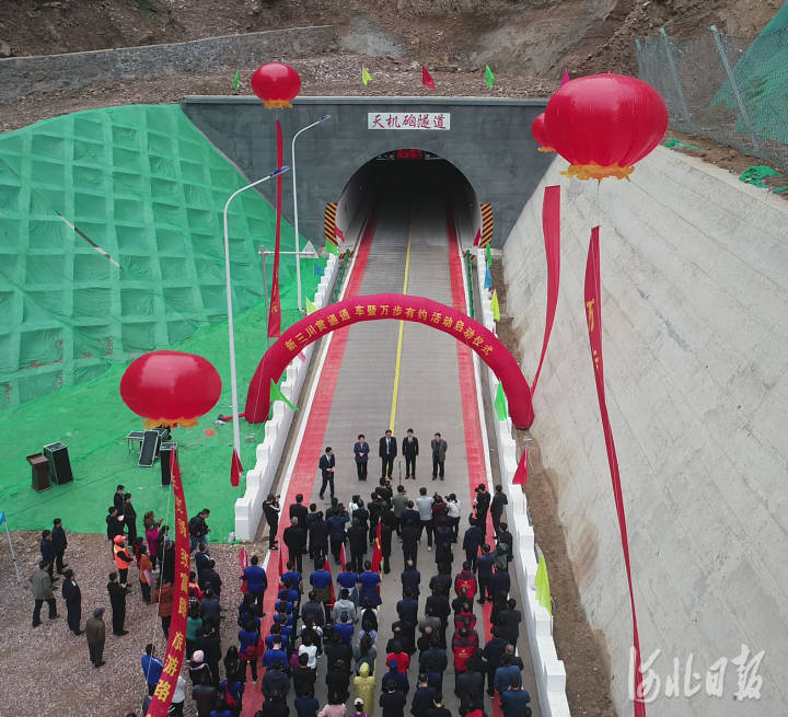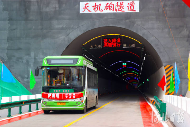 天机硇隧道位于沙河市西部深山区,北起蝉房乡后渐寺村北,南至柴关乡银河沟村南,总投资7700余万元,全长1660米,净宽9米,单洞双向行驶,是邢台市农村公路中里程最长、建设标准最高的一条隧道,是沙河市西部三川(柴关川、蝉房川、孔庄川)贯通的又一条关键性通道。天机硇是横亘在沙河市蝉房川和柴关川之间的一座大山,实现两川贯通是沙河市西部山区群众的夙愿。2020年,沙河市投资1.2亿元,将全长12.6公里的新三川贯通项目列为重点民生工程。作为新三川贯通工程中的关键工程,天机硇隧道原计划321天的工期,仅用127天就实现贯通。新三川贯通及天机硇隧道工程的完工,加密了沙河市西部山区路网布局,既解决了困扰山区群众多年的出行难问题,又将沿线旅游景区串点连线、连线成片,成为助力乡村振兴的“致富路、旅游路、发展路、民心路”。河北日报记者 赵永辉 摄影报道