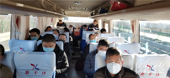 2月17日,员工们上车后分散就坐并全程佩戴口罩。