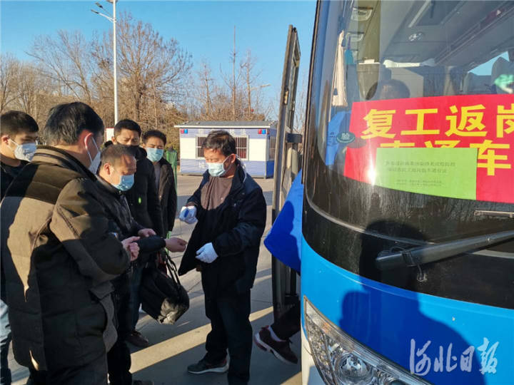 2月15日,甘肃清泉生物科技有限公司向石家庄新干线客运有限公司申请企业复工人员返岗包车业务,共需接返工人18名,用工企业安排1名负责人随行,送达地点为甘肃省高台县。在收到复工企业当地政府开出的同意复工证明后,新干线公司立即向石家庄市交通运输局交通运输综合执法支队进行线上申请,实时在线审批,并取得石家庄市春节后第一张农民工返岗复工定制包车牌照。