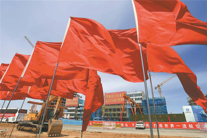 临空经济区内红旗招展,塔吊林立。记者杨锦乐摄